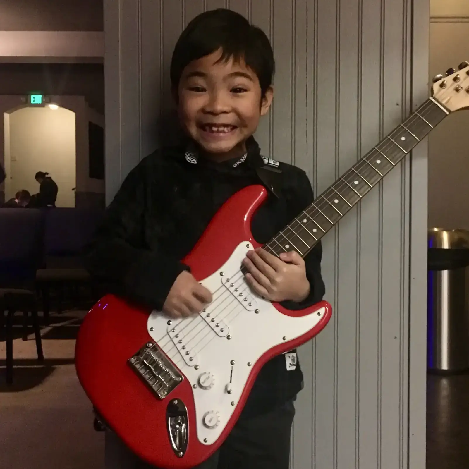 Guitar is challenging in the beginning. Kids can lose patience, get bored, or discouraged from the lack of pleasant sounds coming out of their instrument. This is why we take time to make sure we work with them at their level and get small successes and just enjoy it.